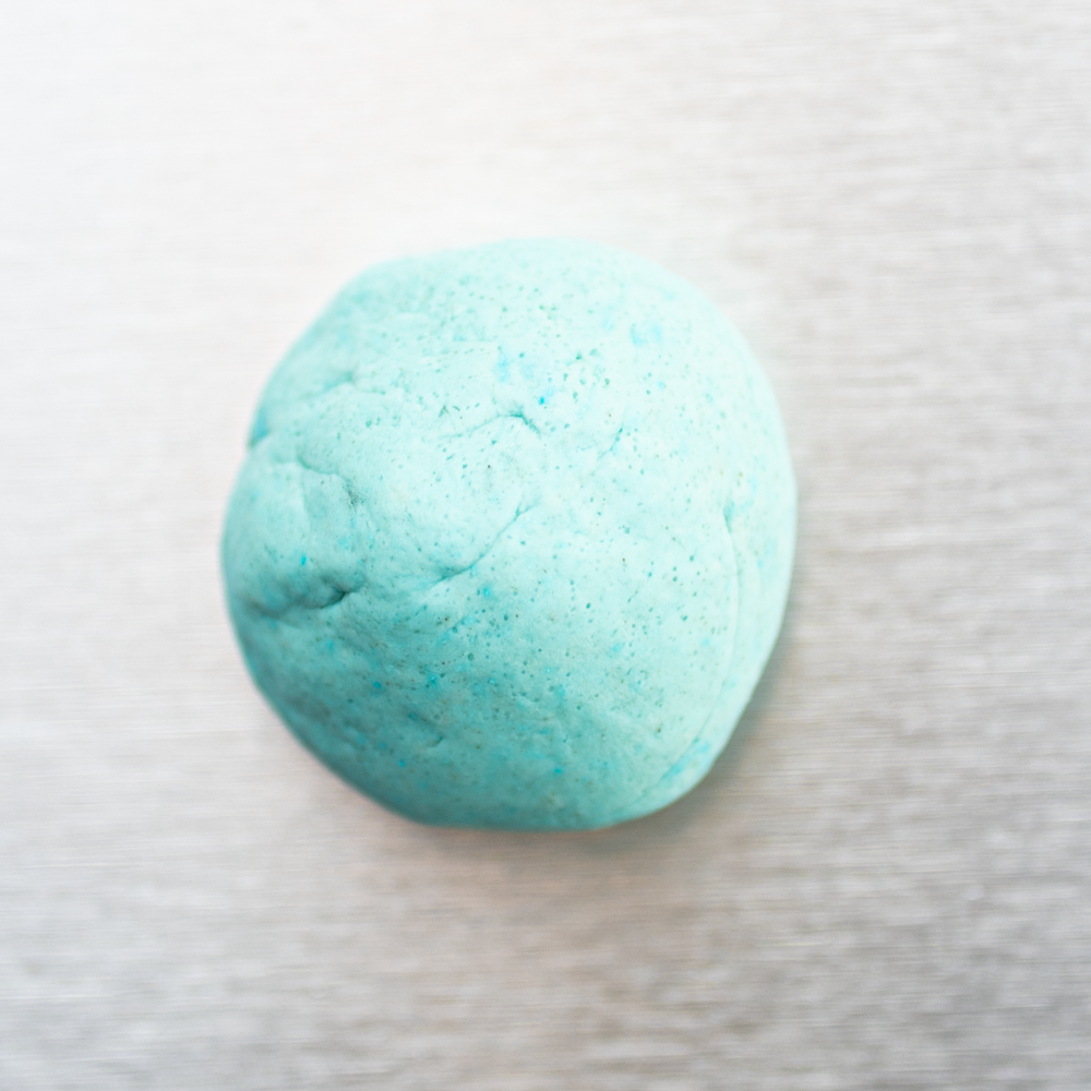 Falls die Knete hierbei etwas zu klebrig wird, kann durch vermischen mit etwas Weizenmehl die Knete wieder aufgefrischt werden.