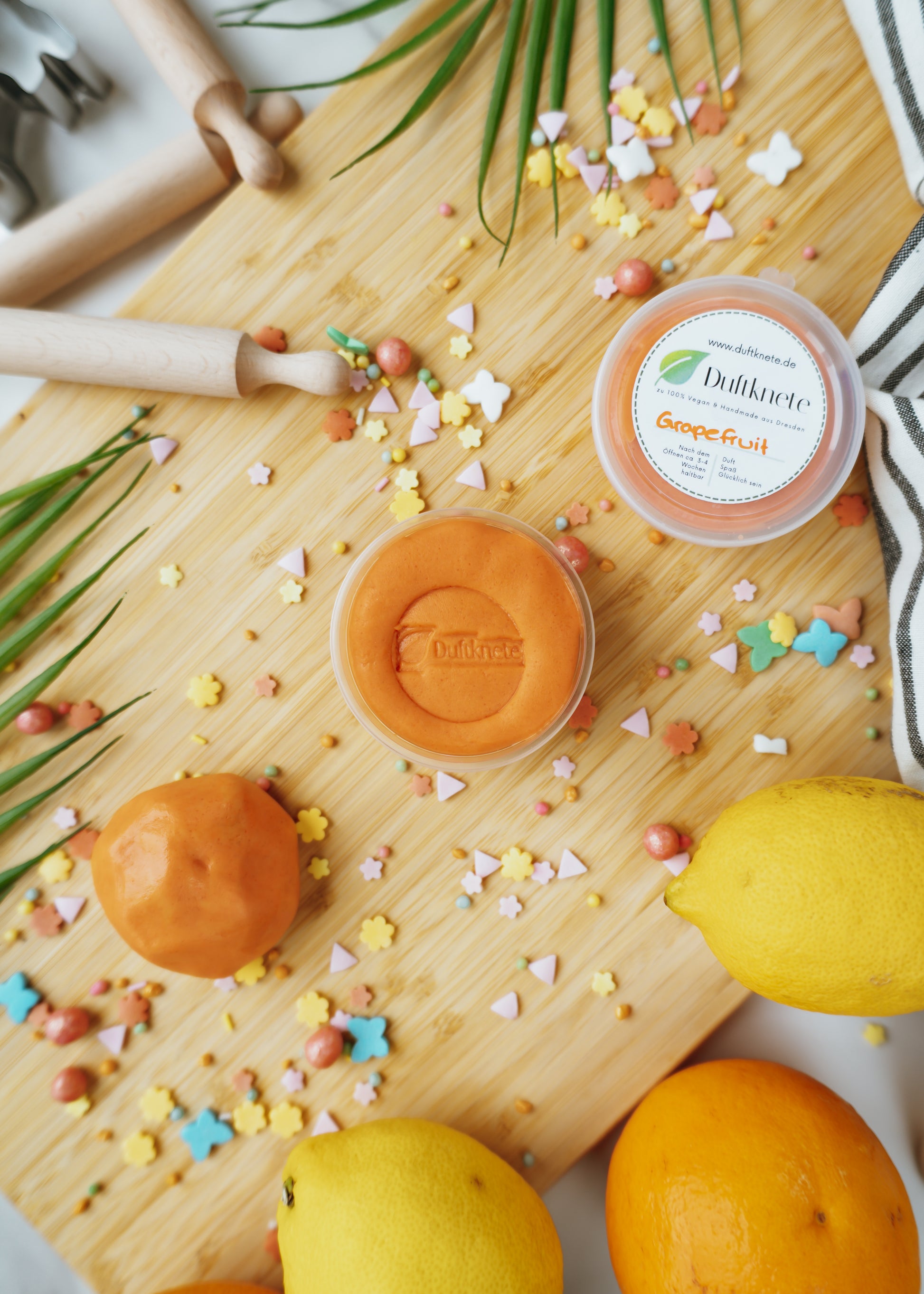 Die beste Freundin von der Grapefruit-Knete ist die gelbe Zitronen-Knete. Gemeinsam sind sie ein starkes Zitrus-Duo, das mega gute Laune macht.