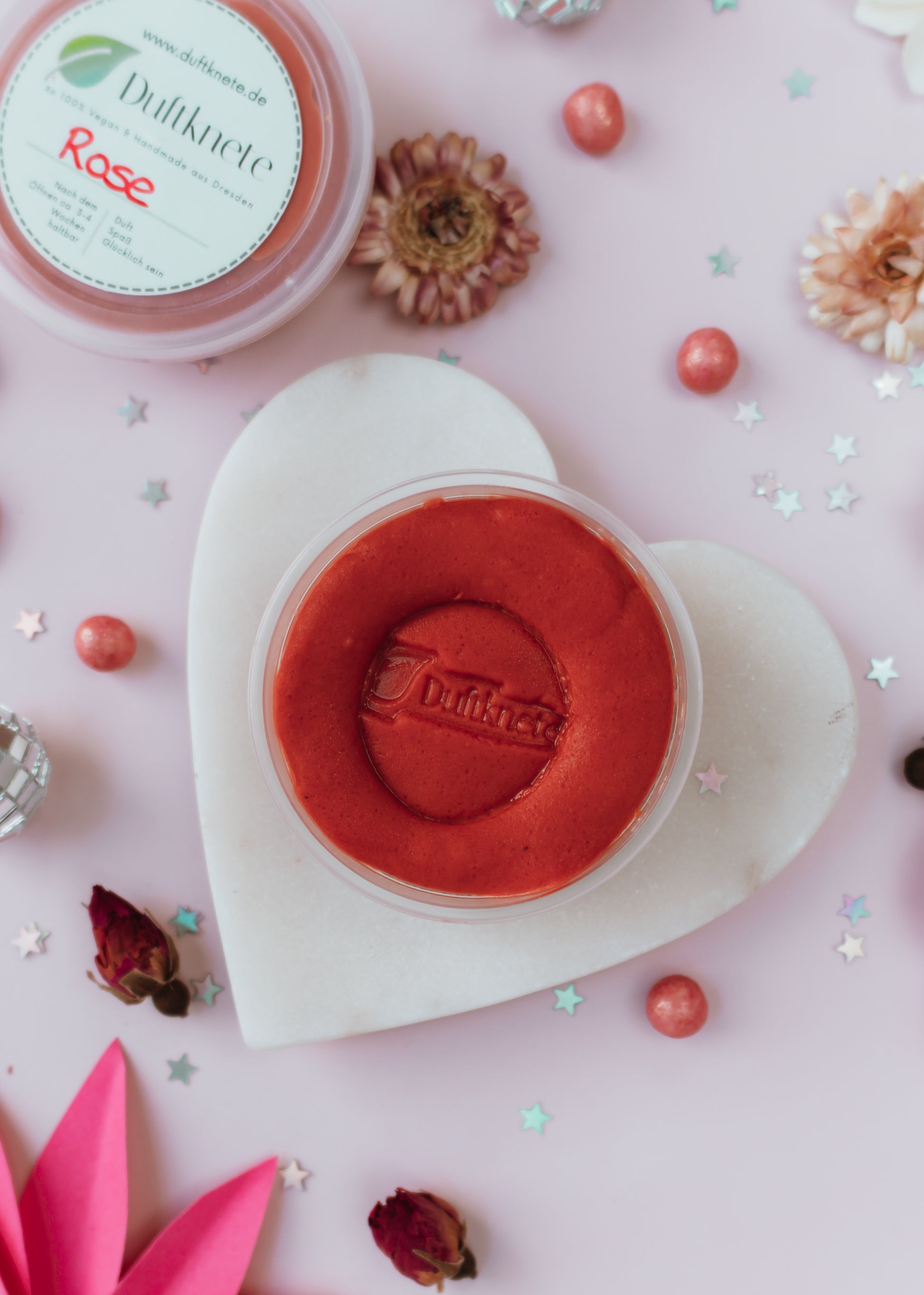 Die Rosen-Knete ist etwas ganz besonderes. Ihr lieblicher und leicht süßer Duft ist wie eine Kuscheldecke am Abend in welche man sich gerne einkuschelt. Rose hilft dir und deinem Kind dabei euch zu entspannen, vielleicht kleine oder auch große Ängste zu überwinden und gemeinsam ins Tun zu kommen.